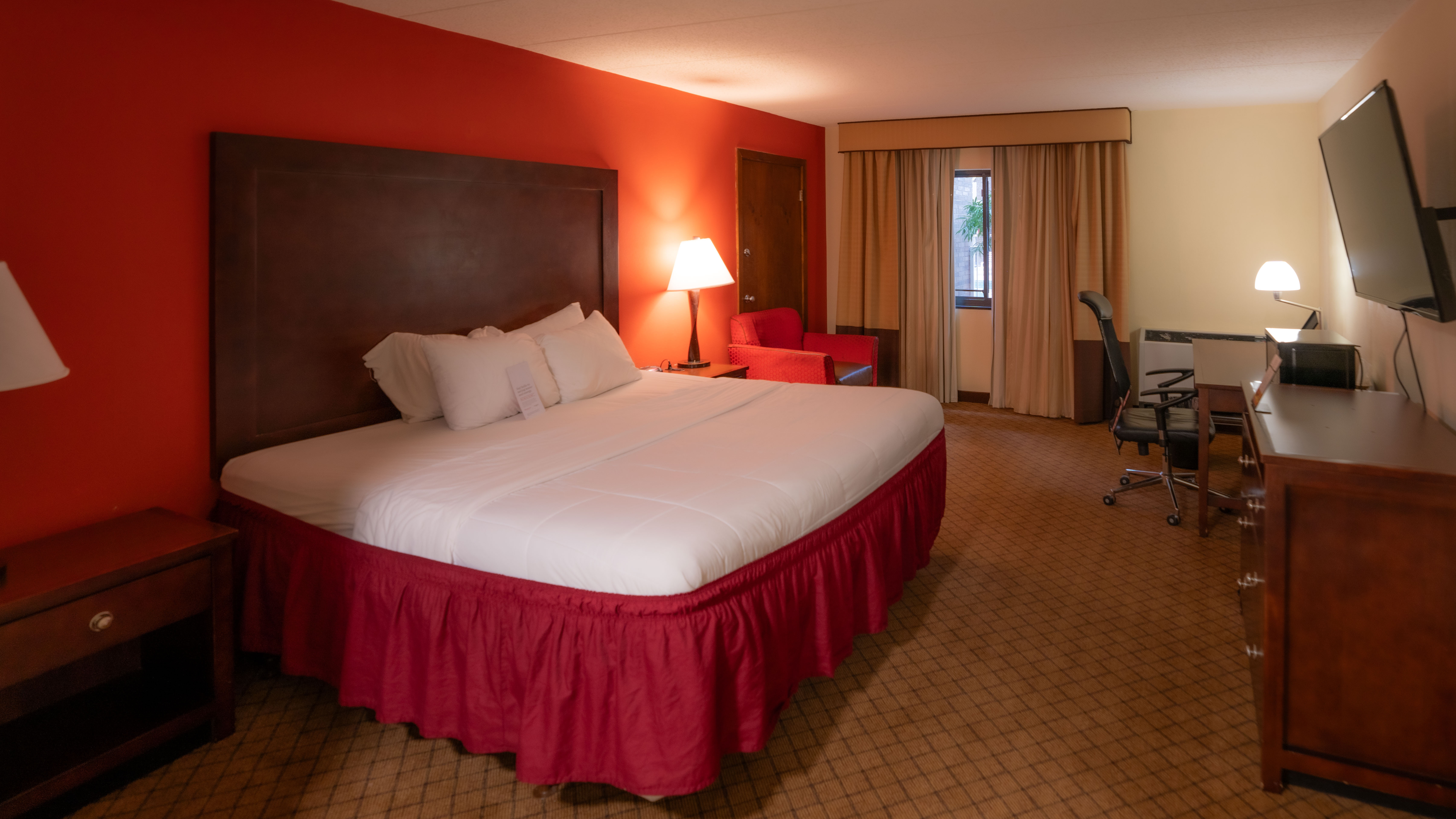 The NK1 Standard King Room offers a comfortable retreat designed for relaxation between all the excitement. Featuring a spacious layout, plush 🛏️ king bed, and soft carpeted flooring, it’s perfect for couples who value both comfort and privacy.