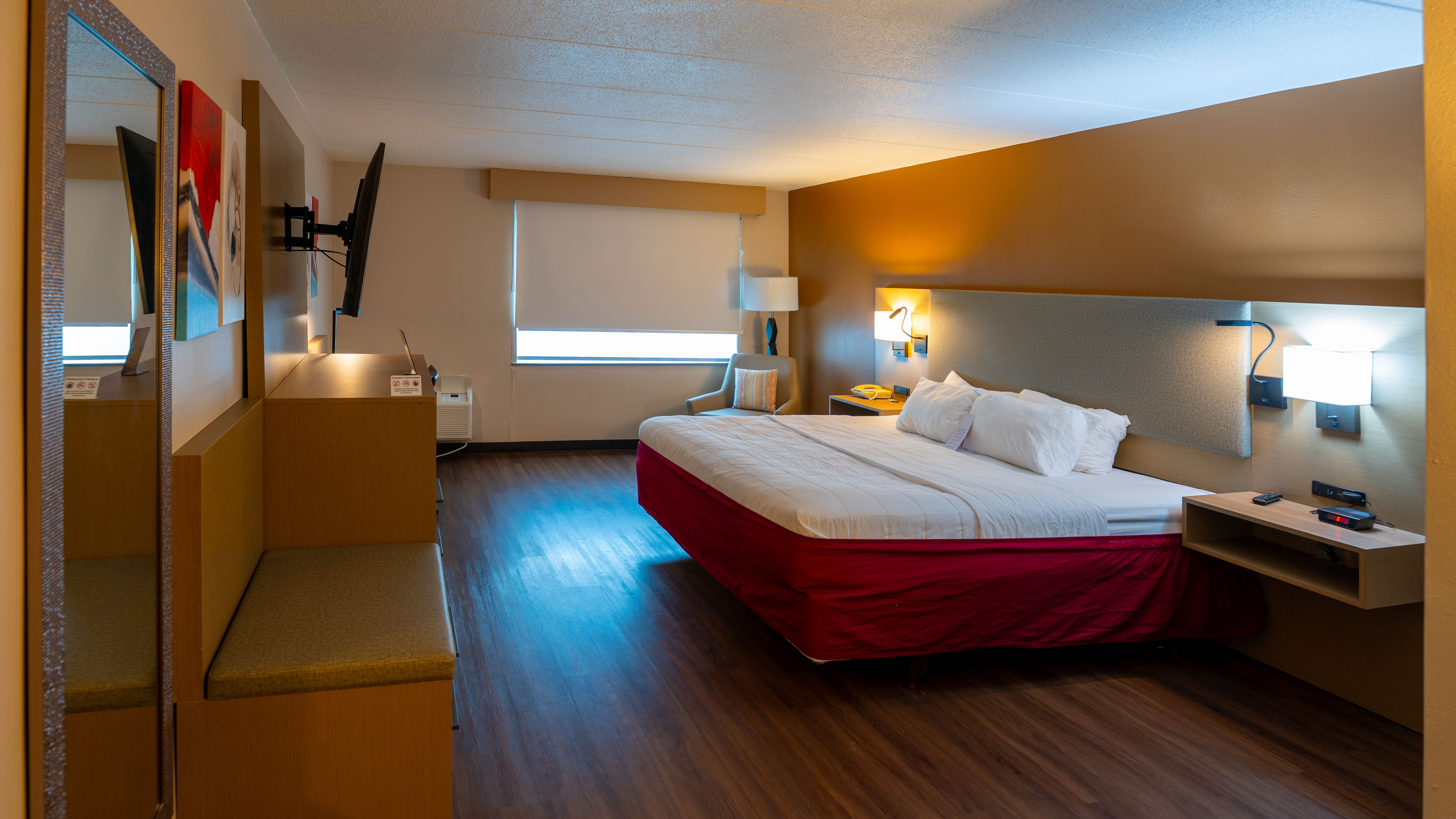 The NK6 Superior King Room delivers a modernized and upscale environment for couples who enjoy premium comfort. With freshly updated décor, new furniture, and elegant 🚿 hardwood floors, these rooms are designed to feel clean, open, and inviting — a perfect space to recharge between the evening’s excitement.